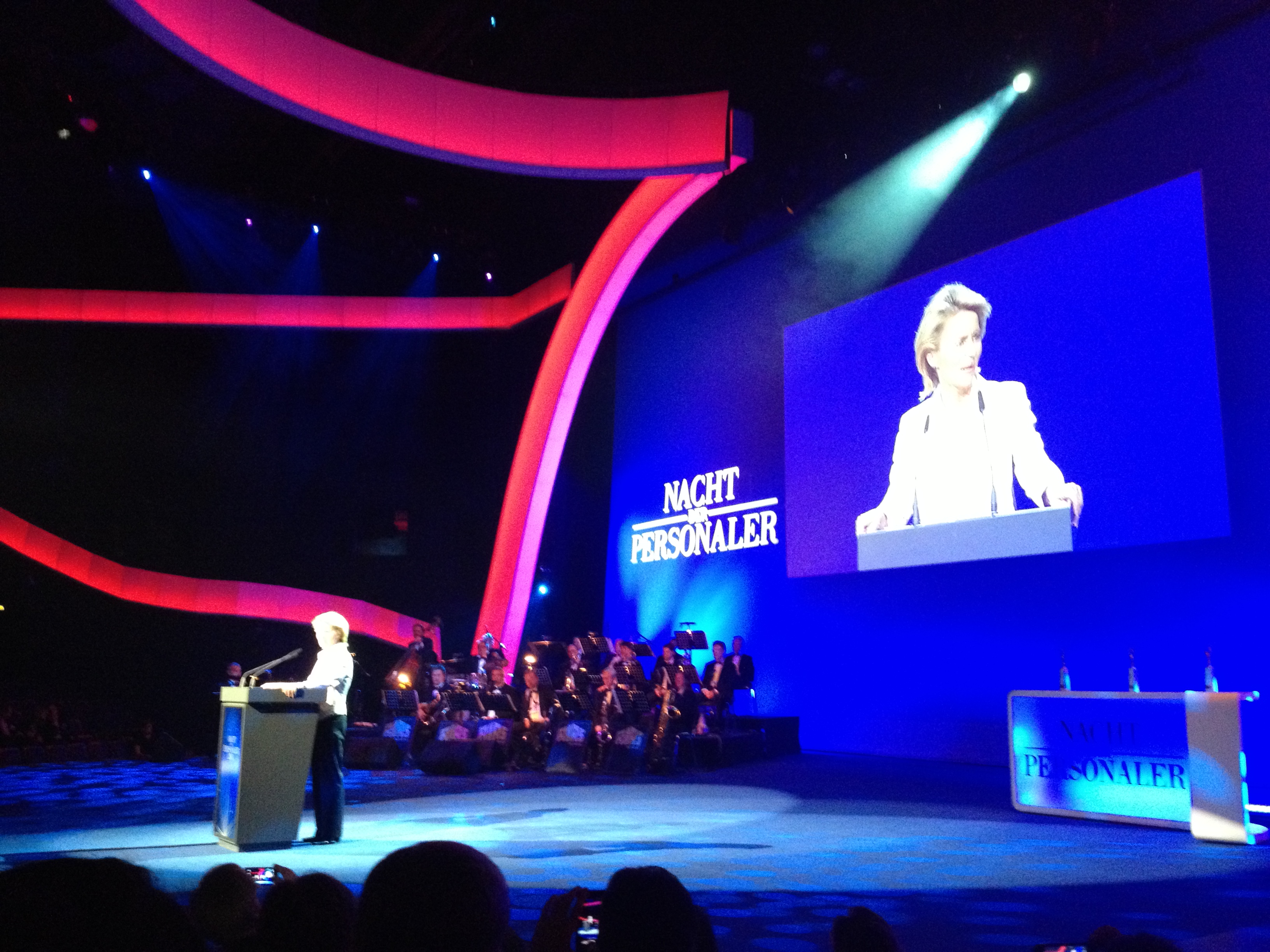 Kein PMK ohne anständige Abendveranstaltung. Man muss schon sagen, ein bisschen Glamour schadet nie. Ein roter Teppich, hier und da ein wenig Glitzer und eine angemessene Location machen einen Networkabend doch so richtig net(t). Ich weiß, sich als Personaler so prunkhaft zu feiern … muss vielleicht nicht unbedingt sein, denn die richtigen Macher sind wir ja noch nicht. Spaß hat´s trotzdem gemacht und die Kontakte zu knüpfen und wiederzusehen, war unbezahlbar gut. Inhaltlich bot aber auch die Abendveranstaltung noch einiges. Frau Dr. Ursula von der Leyen fand deutliche Worte für die anwesenden Unternehmen und wünschte sich einen stärkeren Fokus auf die Nachwuchskräfte aus dem europäischen Ausland. Passend zum Thema folgte die Verleihung des Nachwuchsförderpreises und im Anschluss noch die Verleihung des Personalmanagement Awards, der diesmal an die Stadt Esslingen ging. Glückwunsch an die beiden Gewinner!