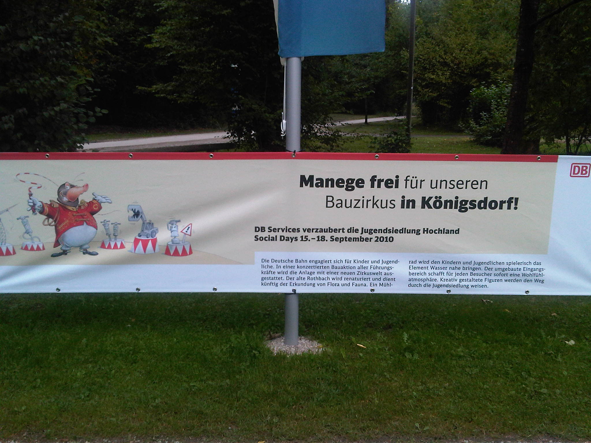 Das soziales Engagement so anstrengend sein kann, war mir bis dato nicht bewusst. Muskelkater ist eine sehr freundliche Umschreibung dessen, was am vergangenen Sonntag mit meinen Körper los war. Seit vergangenem Mittwoch hatten sich 70 Führungskräfte der DB Services – einer Tochtergesellschaft der Deutschen Bahn AG – emsig mit verschiedenen Bauprojekten in Bad Tölz auf dem Gelände der Jugendbildungsstätte Hochland beschäftigt. In 6 Teams wurden mehrere Aufgaben gestämmt. So wurde