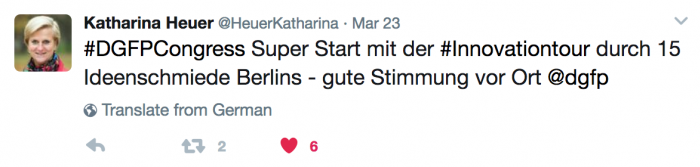 Da hat sich doch einiges beim "verstaubten" DGFP getan. Seit Katharina Heuer am Steuer sitzt, wurde der Landen doch ordentlich gerüttelt. Heute zum Beispiel scheint Blogger Relations kein Fremdwort mehr zu sein und auch die Geschäftsführung selbst geht mit gutem Beispiel (Tweets von Tag 1 und Tag 2 von Katharina Heuer finden Sie zwischen durch im Artikel) voran. Der Artikel wird sich im Wesentlichen auf eine Session fokussieren, die mich nachhaltig beeindruckt hat.
